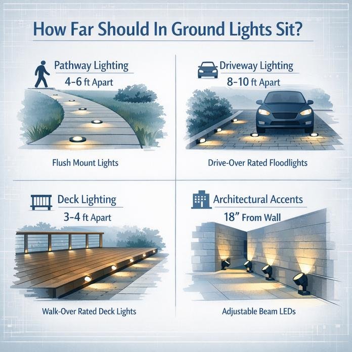 How Far Should In Ground Lights Sit?
